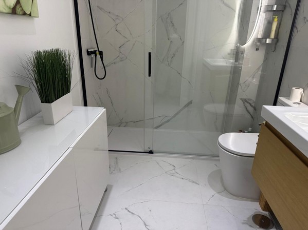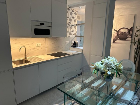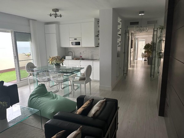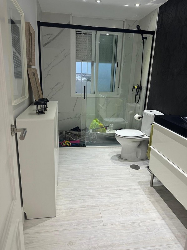 La cocina americana, moderna y funcional, se integra perfectamente con el salón comedor, creando un ambiente ideal para compartir momentos inolvidables. Pero lo que realmente destaca es la impresionante terraza de 43 metros cuadrados, donde podrás relajarte y disfrutar de vistas al mar, al lado Victoria y al puerto deportivo. Imagina tus mañanas tomando café mientras contemplas el amanecer sobre el Mediterráneo.
